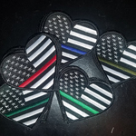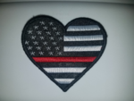 Show Your Support for the brave men and women of our Police, Military and Firefighters "Thin Line Heart Flag" Embroidered Patch. The patch measures 2" x 4" and features black & white background of United States flag.  This patch is sew-on which is generally more flexible to sew onto garments or other types of fabrics. Great to apply on caps/hats, uniforms, jackets, shirts, bags, etc.